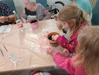 Diesmal lautete der Auftrag: Sonnenblumen pflanzen. Mit Begeisterung machten sich die Kinder ans Werk. Zuerst wurden die Blumentöpfe mit bunten Farben bemalt – jeder ein kleines Kunstwerk für sich. Einige der Senioren standen beratend zur Seite, andere stimmten sogar Lieder an, was für eine besonders warme Atmosphäre sorgte.