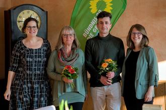(v. l.): Sprecherin der MYK Grünen Rebecca Stallbaumer, Anje Kreßmann, Simon Schmitz, Mitglied des Landtages Lea Heidbreder