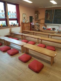 Anstatt mit Tischen und Stühlen ist das Klassenzimmer mit beweglichem Mobiliar, Kissen und Teppichen ausgestattet. In dieser Umgebung soll sich die Eigenaktivität, Lernmotivation, die emotionale und kognitive Intelligenz sowie Sozialkompetenzen besser entfalten als mit klassischen Schulmöbeln.