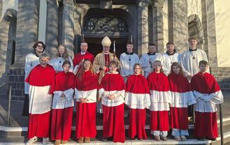 An seinem Namenstag kam der Trierer Bischof Dr. Stephan Ackermann in seine Heimat und feierte in der Pfarrkirche Sankt Dionysius in Kruft mit Pastor Norbert Missong und vielen Gläubigen die Heilige Messe. Musikalisch wurde der Gottesdienst mitgestaltet vom Kirchenchor Cäcilia. Zahlreiche Menschen nutzten die Gelegenheit, um mit dem Bischof ein paar Worte zu wechseln und ihm zum Namenstag zu gratulieren. Dieser freute sich, bekannte Gesichter wiederzusehen. Mit einigen Ministranten der Pfarreiengemeinschaft Kruft-Nickenich und Pfarrer Norbert Missong stellte sich Bischof Stephan auch zum Gruppenbild.