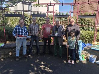 Bei sonnigem Wetter wurde die Grünfläche gesäubert und die Blumenkästen bepflanzt.