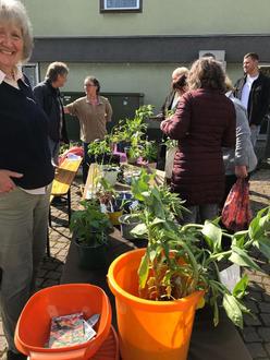 Bei sonnigem Wetter kamen viele Interessierte direkt zu Beginn der Veranstaltung (9:30 Uhr), um sich vom vielseitigen Sortiment an Pflanzen und Samen zum Gärtnern anregen zu lassen. Einige brachten eigene überzählige Sorten von zu Hause zum Tausch mit.
