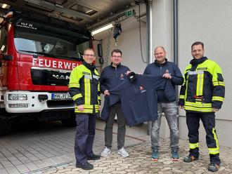 „Die Pullover werden von den Mitgliedern des Löschzuges dankend angenommen und sind nun regelmäßig bei Übungen zu sehen. Gerade in der Übergangszeit die perfekte Wahl!“ betont Wehrführer Dirk Schwindenhammer. Er nahm symbolisch einen Pullover mit dem stellvertretenden Wehrführer Kai Schwindenhammer entgegen. Übergeben wurden die Pullover durch den Vorsitzenden des Fördervereins, Jürgen Kaiser, und seinen Stellvertreter, Lukas Bonn.