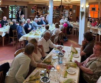 Im gemütlichen Teil der Veranstaltung konnten die Gäste beim gemeinschaftlichen Essen dann in alten Erinnerungen schwelgen wie auch Neuigkeiten austauschen. Für die Speisen zeigte sich das Team der Hauptküche um Frank Will verantwortlich, das ein wundervolles Menü mit saisonalen Zutaten kreierte. Hausoberer Erik Hau zeigte sich sehr zufrieden mit der großartigen Resonanz: So waren rund 100 Rentnerinnen und Rentner der Einladung nach Saffig gefolgt.