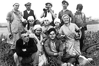 Vorn v.l.: N.N., Erika Wilkes, Josef Bell, mittlere Reihe v.l.: Antonia Kreier, Maria Gutgesell, Gretel Kraus, Mathias Schefbauer, hintere Reihe v.l.: Käthe Gorges, Nikolaus Gorges, Peter Krauper, Josef Lotzen und Philipp Gorges.