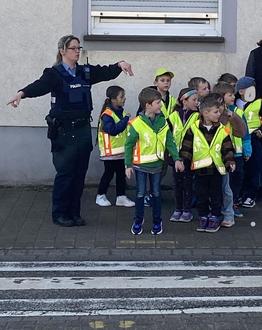 Hierbei lernten wir die Polizei als „Freund und Helfer“, ihre Aufgaben und Ausrüstung kennen. Unter anderem wurde auch über Sicherheitssysteme und sicheres Mitfahren im Auto gesprochen. Anschließend wurde theoretisches Wissen zum Thema sicheres Verhalten im Straßenverkehr praktisch erprobt. Mit praktischen Übungen im Straßenverkehr wurden Gefahren aufgezeigt, wie man sie möglichst vermeiden kann bzw. damit umgeht. Das Überqueren von Fahrbahnen an verschiedenen Stellen (gelbe Füße) oder am Zebrastreifen wurde selber ausprobiert. Zurück in der Kita wurde auf dem Parkplatz der Streifenwagen erkundet. Ergänzend zur Verkehrserziehung wurde der Punkt Verhalten in sonstigen Gefahrensituationen anhand einer Bildergeschichte gemeinsam erarbeitet und besprochen. Ein aufregender Morgen ging mit der offiziellen Übergabe des Fußgängerpasses zu Ende. Wir bedanken uns recht herzlich bei der Polizeiinspektion Andernach für das Erlebnis. Wir werden uns noch lange an diesen Besuch erinnern.