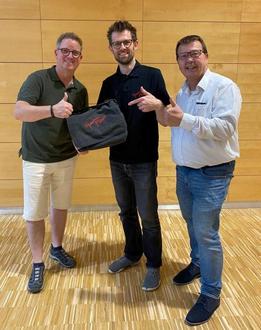 Am Donnerstag, dem 22. Juni erhielt Martin Wiederstein seine Chorutensilien (Tasche mit 3 großen Notenbüchern und Chor-Shirt) vom 1. Geschäftsführer Carsten Müller und dem 1. Schriftführer Stefan Heuft.
