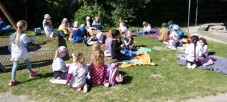 Die Süßigkeitenkiste war im Sand verbuddelt. Lange musste man nicht auf die Schatzsucher warten. Nach einer kurzen Begrüßung wurden mit Hilfe von "Kalt-" und "Warmrufen" der Schatz schnell gefunden und vernascht. Ein tolles Picknick auf den ausgebreiteten Decken folgte und endlich durfte gespielt und getobt werden. Rutschen, schaukeln, klettern, das alles lässt die Zeit rasend schnell vergehen. Aber schon bald trifft man sich wieder...