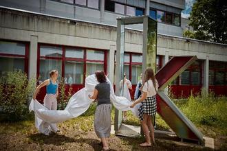 Der Kunst LK der MSS 12 bei der Enthüllung des neuen Kunstwerks.