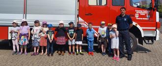 Wie in jedem Jahr hieß es im Juni: „Tatütata die Feuerwehr ist da“ - im Rahmen dieser Projektwoche übten die Kindern mit ihren Erzieherinnen das richtige Verhalten im Brandfall. Sie lernten die Aufgaben der Feuerwehr und ihre Ausrüstung kennen z.B. die Schutzkleidung, das Feuerwehrauto und bei einem Besuch auch das Feuerwehrhaus.
