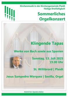 | Plaidt | 19:00 Uhr | Sommerliches Orgelkonzert mit Jesus Sampedro Marquez |