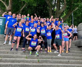 Eine Gruppe aus Mitarbeitenden der Barmherzigen Brüdern Saffig (BBS) und der BBT-Gruppe hat, gemeinsam mit rund 16.000 Personen aus 600 Unternehmen, am diesjährigen B2Run-Firmenlauf in Koblenz teilgenommen. Knapp 50 Mitarbeitende aus den unterschiedlichsten Dienstbereichen sowie Geschäftsführer Dr. Frank Zils haben sich der Herausforderung der 5,4 Kilometer langen Strecke gestellt – ausgestattet mit einem eigens für das Jubiläumsjahr der BBT-Gruppe gestalteten Laufshirt. Der Startpunkt war am Deutschen Eck, wo man sich zunächst für ein gemeinsames Gruppenfoto versammelte und gemeinsam auf den Lauf einstimmte. Von dort aus ging es Richtung Koblenzer Innenstadt, vorbei am Schloss und anschließend am Rhein entlang zurück zum Deutschen Eck. Sowohl auf als auch neben der Strecke gingen Partystimmung und ein sportlich-faires Miteinander Hand in Hand. Am Ende standen dabei weniger das Gewinnen, sondern das gemeinsame Erlebnis und die Stärkung der Dienstgemeinschaft im Fokus – und so ließ die Gruppe nach dem Zieleinlauf den Tag in geselliger Runde ausklingen. Für manche ging es im Anschluss noch ins Peter-Friedhofen-Haus in der Koblenzer Altstadt, wo die Barmherzigen Brüder von Maria-Hilf anlässlich des 175-jährigen Ordensjubiläums zum Cocktailabend einluden. Ein rundum gelungener Tag, der perfekt zum Motto des Jubiläumsjahres 2025 passte: „Mit Mut und Freude weiter“.