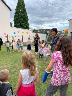 Nach diesem ereignisreichen Tag, vielen Erlebnissen und einigen geschminkten Gesichtern trafen sich die Kinder am Ende nochmals auf der großen Wiese. Dort verabschiedeten sie sich mit dem Lied „Alle Leut“ von ihren Gästen und starteten ins wohlverdiente Wochenende.