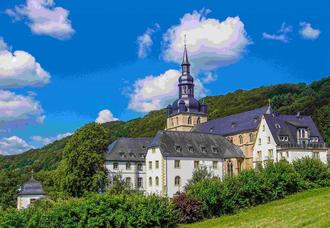 Die heute noch bestehende Klosteranlage befindet sich auf den Trümmern einer römischen Badeanlage. Nach der umfangreichen Sanierung zwischen 2008 und 2020 ist hier Weltkunst entstanden. International bekannt wurde die Abteikirche durch die neuen Fenster der afghanischen Künstlerin Mahbuba Maqsoodi und Gerhard Richter. Während die religiösen Abbildungen von Maqsoodi durch kräftige Farben und Flächen geprägt sind, weichen Richters Varianten jeglicher Form und bestechen durch ihre Farbigkeit und Abstraktion. Das Besondere daran: die Verschiedenheit der Entwürfe, die dennoch ein Gesamtbild ergeben und den historischen Bau mit modernen Elementen in Einklang bringen.