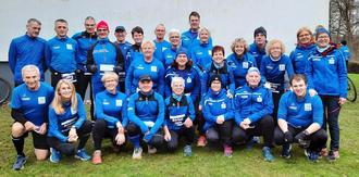 Die LG’ler vor dem Start mit den Altersklassensiegerinnen (2. und 5. v.li. vorne Andrea Dahm und Bärbel Monschauer, 10. v.li. hinten Iris Oberhoffer