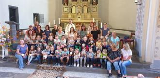 Das Abschiedsfest begann mit einem Wortgottesdienst in der Kirche St. Arnulf und wurde von den Kindern gestaltet und von Pfarrer Norbert Missong begleitet. Sie spielten das Bilderbuch nach „Ein Rucksack voller Glück“ und erhielten zum Dank einen tobenden Applaus der Eltern und Großeltern.