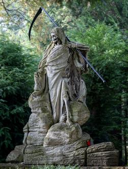 Der Sensemann ist das Wahrzeichen des Melatenfriedhofs; Foto: Wikipedia