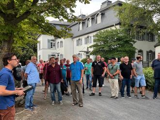 SAFFIG. Der Schlosspark der Barmherzigen Brüder Saffig war der geheime Ort zu dem die Teilnehmerinnen und Teilnehmer des „Blauen Montag“ mit Bussen und Planwagen gebracht wurden.