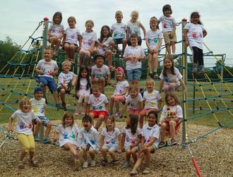 Die „großen Kindergartenkinder“ auf dem Spielplatz in Kretz.