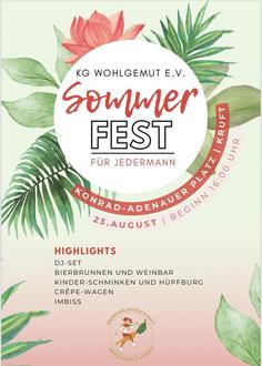 Auch in diesem Jahr laden wir euch herzlich zu unserem Sommerfest am 23. August ein. Wir von der KG Wohlgemut freuen uns, euch begrüßen zu dürfen und mit euch zu feiern. Der Konrad-Adenauer Platz in Kruft ist an diesem Tag für jedermann und jederfrau geöffnet. Kommt vorbei und genießt einen tollen Abend mit Musik, leckerem Essen und ganz viel Spaß!
