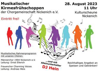 NICKENICH. Was wäre eine Dorfkirmes ohne Frühschoppen? Seit Jahrzehnten pflegt die Nickenicher Chorgemeinschaft diese schöne Tradition und richtet den Kirmesfrühschoppen an Kirmesmontag aus. Nach dem großen Erfolg im letzten Jahr, als der Frühschoppen nach zwei-jähriger Corona-Pause eine grandiose Wiedergeburt feierte, lädt die Chorgemeinschaft Nickenich auch in diesem Jahr wieder an Kirmesmontag zum geselligen Beisammensein ein.