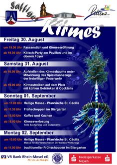 In gut eineinhalb Wochen ist es wieder soweit, in Saffig wird Kirmes gefeiert. Zur Übersicht über das Kirmesgeschehen folgt das Programm über die 4 Tage von Freitag bis Montag.
