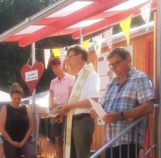 Es gab viele strahlende Gesichter und auch die Sonne strahlte. Und Pastor Norbert Missong betete mit den Anwesenden um den Segen Gottes.