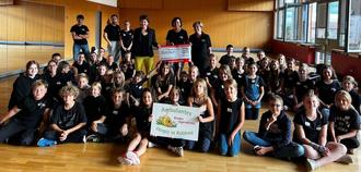 Die Pellenz Musical School e.V. übergibt dem ambulanten Kinderhospiz den Spendenscheck.
