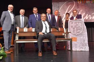 Bewegender Abschied als Bürgermeister der Verbandsgemeinde: Zwei Jahrzehnte hat Klaus Bell die Pellenz im Einklang gehalten und sich zum Wohl der Bürgerinnen und Bürger eingesetzt. Zum Dank dafür haben ihm die Ortsbürgermeister nun eine Bank mit den Wappen der fünf Ortsgemeinden geschenkt.