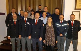 Außerdem freuten sich Bereitschaftsleiter Benedikt Stracke und Vorsitzender Marco Dworschak über Informationen des Ortsbürgermeisters zu einer sich abzeichnenden positiven Entwicklung der Unterbringungssituation der ehrenmatlchen DRK Helfer*innen sowie den drei Einsatzfahrzeugen der Bereitschaft.