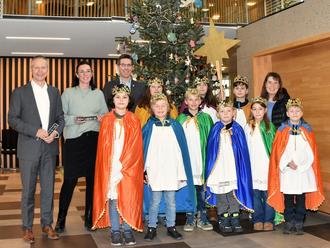Bei der diesjährigen Sternsingeraktion besuchten die Sternsinger aus Saffig der kath. Kirchengemeinde Plaidt Heilige Dreifaltigkeit das Rathaus der Verbandsgemeindeverwaltung Pellenz in Plaidt. Hier wurden sie von Bürgermeister Sebastian Busch und seinen Mitarbeitenden herzlich empfangen.
