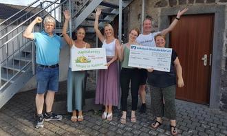 Christoph Seng (Geschäftsführer Spvgg 19.04/25 Nickenich e.V.), Frau Katja Masendorf (Kinderhospiz Koblenz), Kerstin Kruppa (Trainerin), Melanie Schander (Trainerin), Marcus Tilch (Trainer, Abteilungsleiter Turnabteilung), Kerstin Krings-Waldecker (Abteilungsleiterin Turnabteilung)
