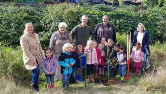 PLAIDT. Am Freitag den 23.9.22 stiftete Marc Moseler, ein Vater aus der Bienengruppe dem Kindergarten drei Weiden. Gemeinsam mit dieser Kindergruppe wurden als erstes die Pflanzlöcher mit Handerdbohrern vorbereitet und anschließend gepflanzt.