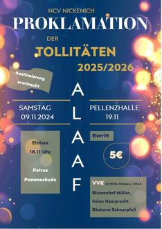 Für 5€ pro Karte seid ihr dabei, wenn das Geheimnis um die neuen närrischen Regenten gelüftet wird, genießt das bunte Programm, feiert, tanzt und lacht.