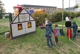 Auch Omas und Opas waren hierzu herzlich eingeladen. Austoben konnten sich die Kinder an den Spieltischen, an der Malstation oder bei den Wasser-Experimenten am Feuerwehr-Häuschen, welches uns die freiwillige Feuerwehr zur Verfügung stellte. Auch ein leckeres Buffet stand zur Stärkung bereit.