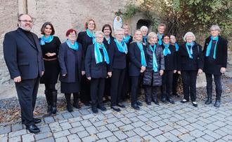 Die Sängerinnen, mit ihrem Chorleiter Tristan Kusber, freuten sich sehr, ihr Programm den Zuhörerinnen und Zuhörern darbieten zu dürfen.