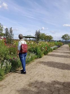Mit der Seilbahn schwebten die Damen dann zum 2. Teil der großen Schau, dem Spinellipark. Das ehemalige Militärgelände ist naturnah gehalten, es wird ein großer Rückzugsort für Insekten und Kleintiere angelegt mit naturnahen Gärten und Pflanzungen der Zukunft, die mit dem Klimawandel hoffentlich zurechtkommen. Aber auch eine Halle mit kunstvoller Floristik und exotischen Pflanzen durfte nicht fehlen.