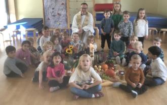 An Erntedank feierten Kinder und Erzieherinnen in der Kindertagesstätte Sankt Elisabeth in Kruft einen kindgemäßen Erntedankgottesdienst. Die Kinder zählten auf, welche Früchte der Schöpfung gewachsen sind und sprachen darüber, was zuhause im Garten alles wächst. Für die Ernte und alles, was ihnen gut schmeckt, dankten die Kinder dem Schöpfer, der alles wachsen lässt. Passende Lieder sangen die Kinder und die Erwachsenen, beteten zusammen und freuten sich an dem Miteinander. Das Obst konnten die Kinder im Anschluss an den Gottesdienst in den Gruppen essen. Zu Ende des Gottesdienstes spendete Pfarrer Norbert Missong den Segen Gottes.