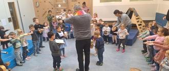 Pastor Kurp kam dann zu Besuch und feierte gemeinsam mit Kindern und Erzieherinnen einen kleinen Gottesdienst und segnete das Gemüse.