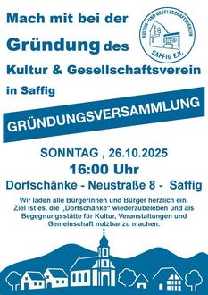 Alle interessierten Bürgerinnen und Bürger sind herzlich eingeladen, an dieser wichtigen Weichenstellung für das gesellschaftliche Leben in Saffig teilzunehmen.