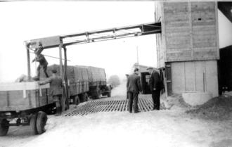 Firma Karl Knollema, Bimsverladung am Silo „Am Rampen“ im Jahr 1956, rechts Karl Knollema