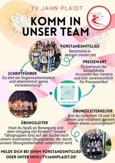 Jeder der bereit ist sich für den Verein und die Mitglieder zu engagieren ist herzlich willkommen. Meldet euch gerne bei Übungsleitern, dem Vorstand oder unter info@tvjahnplaidt.de.