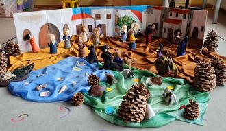 Sie werden den Gottesdienst gemeinsam gestalten. Die Geschichte "Das Wunder der wunderbaren Brotvermehrung" wird gemeinsam gehört.