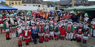 Begleitet vom Spielmannszug der Freiwilligen Feuerwehr Saffig marschierte die Karnevalsgesellschaft Saffig 1985 e.V. gemeinsam mit einer Abordnung der GKG Plaidt samt Dreigestirn zum Rathaus in Saffig. Hier erwarteten schon viele Zuschauer die Karnevalisten.