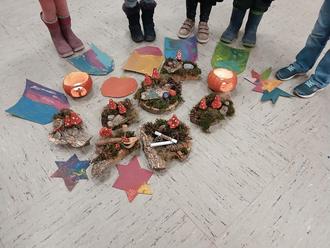 Es erwartete Kinder und Eltern ein buntes Buffet, warme Würstchen und erfrischende Getränke. In gemütlicher Runde wurden wunderschöne Gestecke für den Friedhof gebastelt. Es gab die Möglichkeit, Windlichter zu bekleben und Ritterschilder zu bauen, sowie Kopfbedeckungen nach dem Vorbild einiger Heiliger zu gestalten.