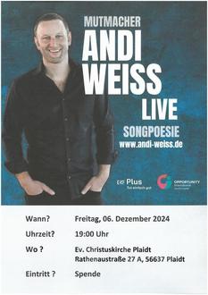 Freitag, 06. Dezember 2024 um 19 Uhr in der Ev. Christuskirche in Plaidt
