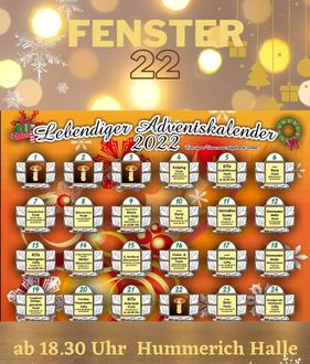 Wir laden Euch alle ein am 22.12.2022 ab 18.30 Uhr die besinnliche Adventszeit bei warmen Getränken und Plätzchen an der Hummerich Halle mit uns zu genießen.
