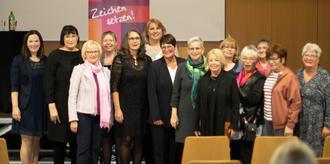 Einen weiteren Höhepunkt des Abends bildete der Auftritt des Kabaretts Weibsbilder, die mit ihren Themen rund ums Singledasein und Singletreffs die Lachmuskeln der Zuschauer aufs Heftigste beanspruchten. Für unzählige Lachtränen sorgte die umwerfende Interaktion mit dem Publikum, insbesondere dem „Zebra“ aus der ersten Reihe. „Ich habe lange nicht mehr so gelacht“ fasste Hedi Thelen den Abend zusammen und bedankte sich sowohl bei den Organisatoren als auch bei den Rednerinnen, die „Historisches, Grundsätzliches, Aktuelles und Humorvolles zur Frauenpolitik interessant, in angemessener Zeit und ohne Ausschweifungen auf den Punkt gebracht haben“.