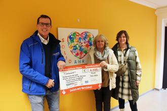 Die Spendenschecks übergab Volker Jungbluth, Geschäftsführer der Jungbluth Nutzfahrzeuge Unternehmensgruppe, gemeinsam mit Nicole Giesen (KL GmbH) und Simone Grewer (Grewer Transporte).