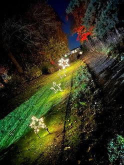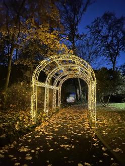 Besonders in der Dämmerung entsteht eine besondere Atmosphäre, da es im Park eine szenische Beleuchtung gibt. Ein Rundgang lohnt sich also als Ziel für einen Spaziergang auf jeden Fall.